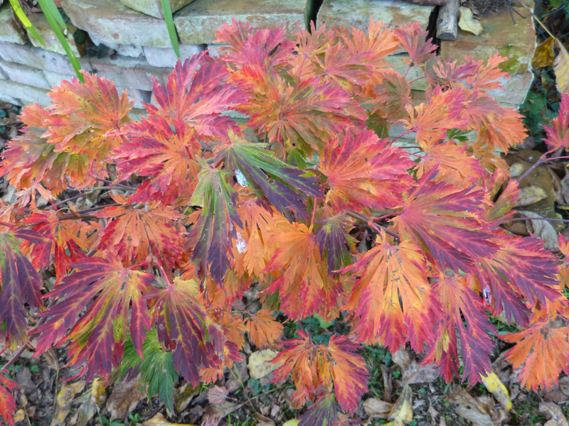 Ich habe leider versäumt,den Federbuschstrauch(Fothergilla majus) zu fotografieren.Der glühte so richtig in der Sonne.Hat aber nach dem vielen Regen jetzt schon sein Laub überwiegend abgeworfen.