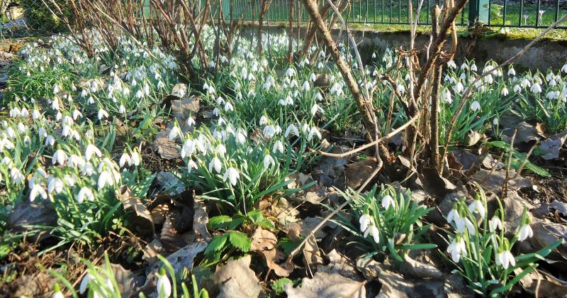 Meinen Schneeglöckchen kann ich leider keine so schöne Wiese bieten. Bei mir müssen sie sich den Platz mit den Johannisbeeren teilen. Aber beide fühlen sich anscheinend recht wohl.