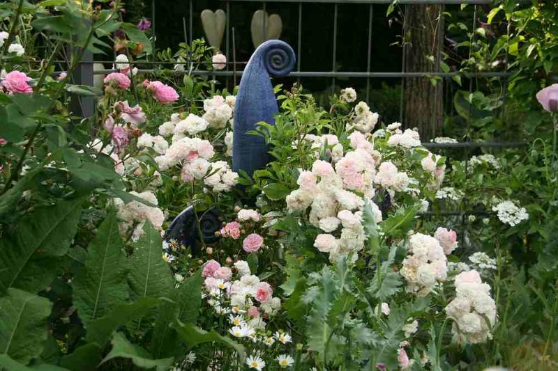 Nicht ganz so wüchsig wäre mir eher recht.Neben Ghislaine, bei der Clematis 'Romantika', steht zur Zeit 'Rosalia', die mir aber nicht so ganz gefällt. Außerdem hat sie falschen Mehltau.Wahrscheinlich reicht die Clematis an der Stelle aber auch aus...Elis, die Kombination mit der blauen Keramik ist toll! Frostfest? Oder sammelst du diese Teile im Herbst ein?Hallo enaira !Habe sie schon ein paar Jahre, sie ist leider nicht so wüchsig wie die andere Gislaine. Sie ist erst so 1,20 m - 1,50 m hoch.lg elisDie sieht ja sehr interessant aus!Hat sie ähnlich gute Eigenschaften?Hast du ein Habitusbild?