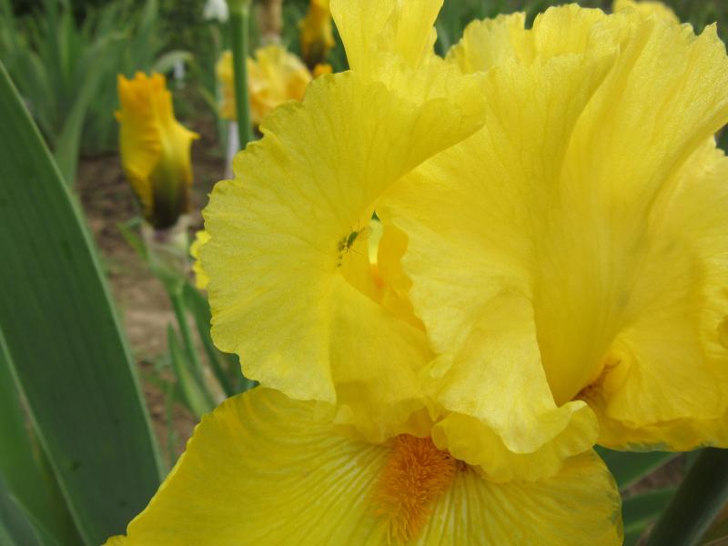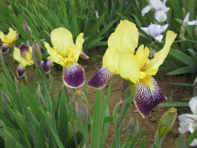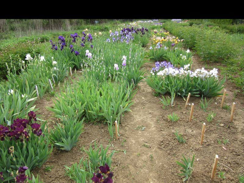 Uralt und ungeschlagen: `Frühlingskleid´, hier äußerst robust! Und irgendwann blieben mal ein paar Rhizome liegen, die sich dann an der Fräse festklebten und übers gesamte neue Irisbeet verteilt wurden. Und natürlich austrieben. Deswegen hier als Irrläufer in jeder fünften Sorte, wobei ich allmählich alle raus habe...