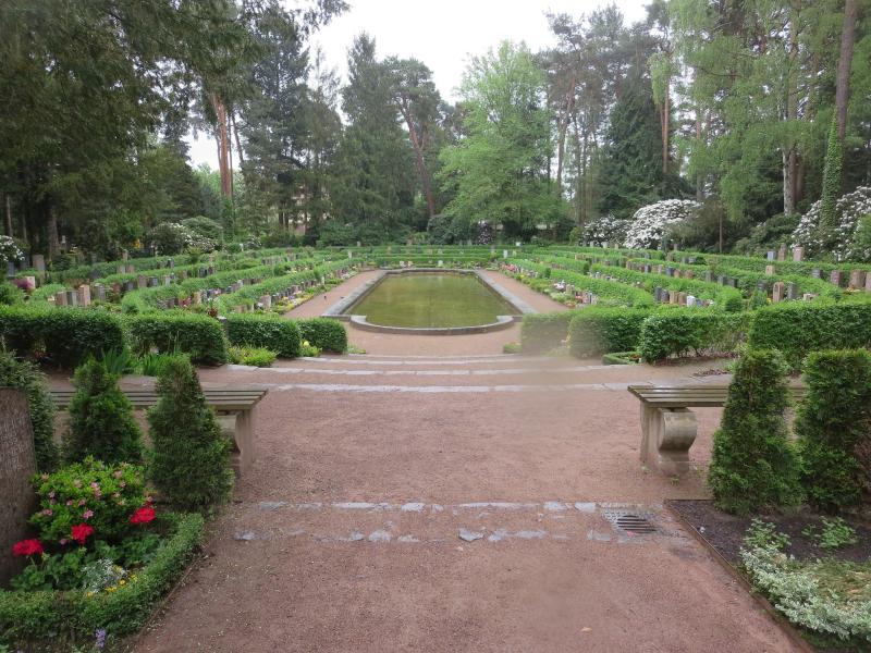 Die meisten Urnen werden in kleinen von Hecken begrenzten Plätzen beigesetzt, worunter ich auch einen Senkgarten entdeckte. Ob man da bei der Bepflanzung der Miniflächen wohl auch Mikroklimata beachten muss?