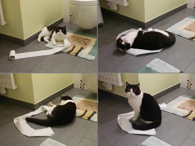 ... was sie nicht nachhaltig schockieren wird ;D. Sie wird erst leicht erschrocken davonflitzen (sobald sie den Ausgang gefunden hat), dann zurückkehren, ihr Werk begutachten und dabei völlig unbeteiligt tun. Vielleicht legt sie sich zu guter Letzt zum Schlafen mittenrein.
