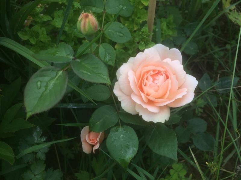 ... und mit Ambridge Rose bin ich auch sehr zufrieden, erst im Mai wurzelnackt gepflanzt und schon oeffnet sie diese bezaubernd apricot-muschelrosa Bluete mit Muschelrand und fein zitronigem Myrreduft!