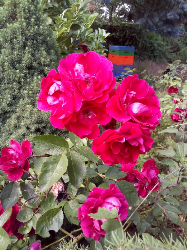 Hab die Rosenblühte in Hochform daher versäumt, aber paar bleiben noch, nur ich komm mit den Abgeblühten abschneiden kaum nach.