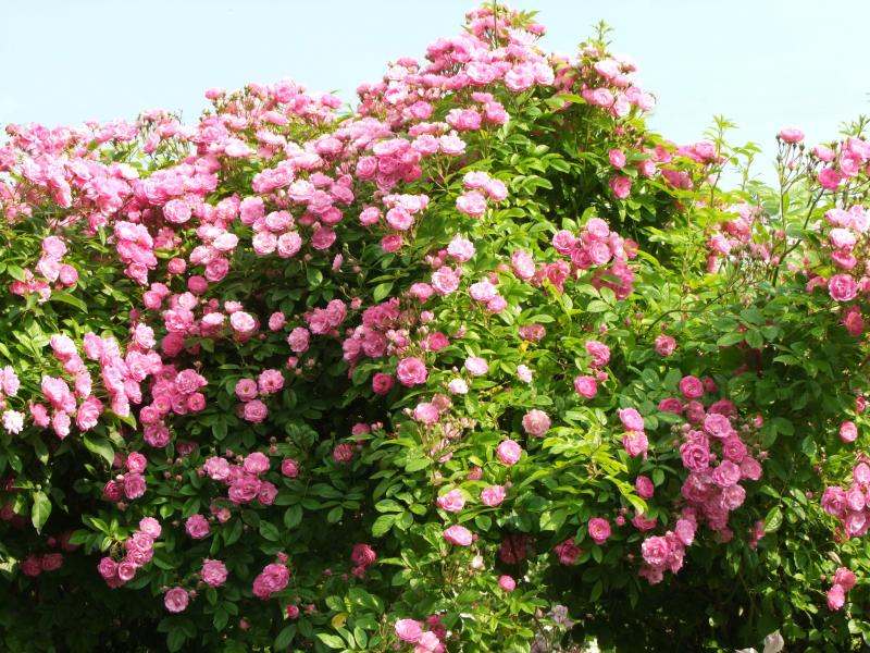 Den Multiflora-Rambler 'Francis'hatte ich vor zwei Jahren unbedacht an einen Durchschnittsbogen gepflanzt.Jetzt legte sie beängstigend zu und ich denke inzwischen,es war ein Fehler. :-X ::)