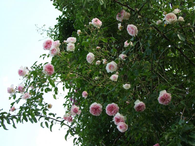 'Claude Rabbe'auch ein rambler mit recht großen Blüten hatte ich schon vergessen.Nun lugte er oben aus einer Birne heraus.Ich bin sehr angetan von den hellrosa Blüten mit dunklerer Mitte.