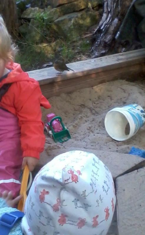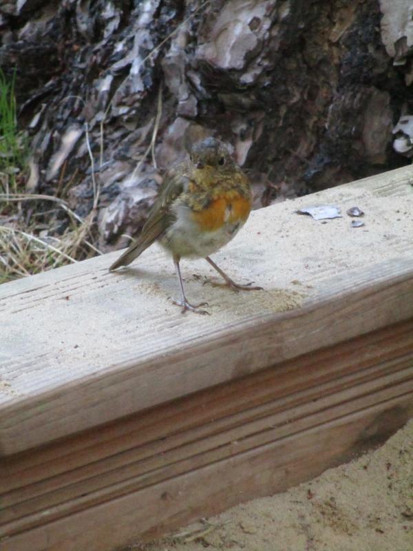 Mein Star des Tages ist eigentlich zwei und kein Star, sondern zwei junge Rotkehlchen. Seit ein paar Tagen kommen sie immer mal wieder neugierig in unsere (Takis und ich) Nähe und zupfen mal hier mal dort im und um den Buddelkasten, huschen fix vorbei und bleiben aufmerksam in der Nähe :D.