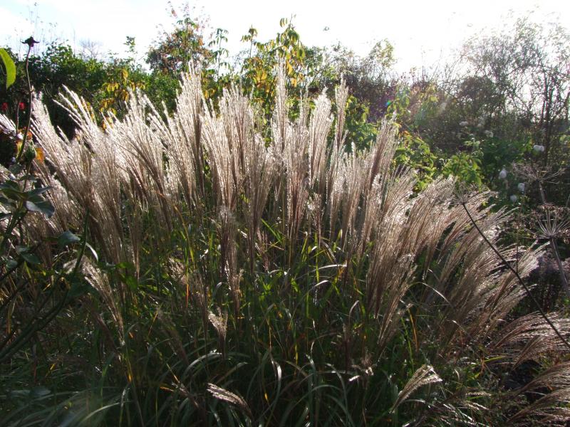Silberner Miscanthus im Gegenlicht.Der Tag war noch überwiegend sonnig.