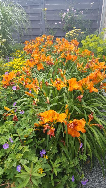 Ich habe hier auch eine Namenlose die hier bestimmt auf 4qm blüht. Sie wurde mir für ein Pflanzkonzept mal als Ersatzlieferung 'Orange Taglilie' geliefert. Damals waren mir Namen noch nicht so wichtig... ;)