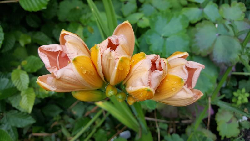 Regen in die sich öffnen wollenden Blüten kommt nicht gut an :-\