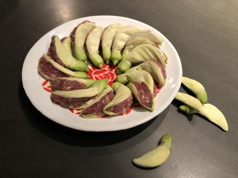 Falls es das Buch noch gibt und Du es mit Amazonlink versiehst, wird das den Verlag sicher nicht stören. Falls nicht, kann es dümmstenfalls passieren, dass man richtig Ärger kriegt. ::) Am besten leider lieber keine Fotos. . Ich werde umbedingt beim nächsten Besuch des italienischen Supermarkts Linguine und auch Makkaroni für pasta alla Norma einkaufen. Ich glaube es Dir aufs Wort, dass die Wahl der Pasta wichtig ist. . Bei uns gab es heute die gefüllten Blüten des Turibaums /Dok Kae - ein lustiges Experiment. :)