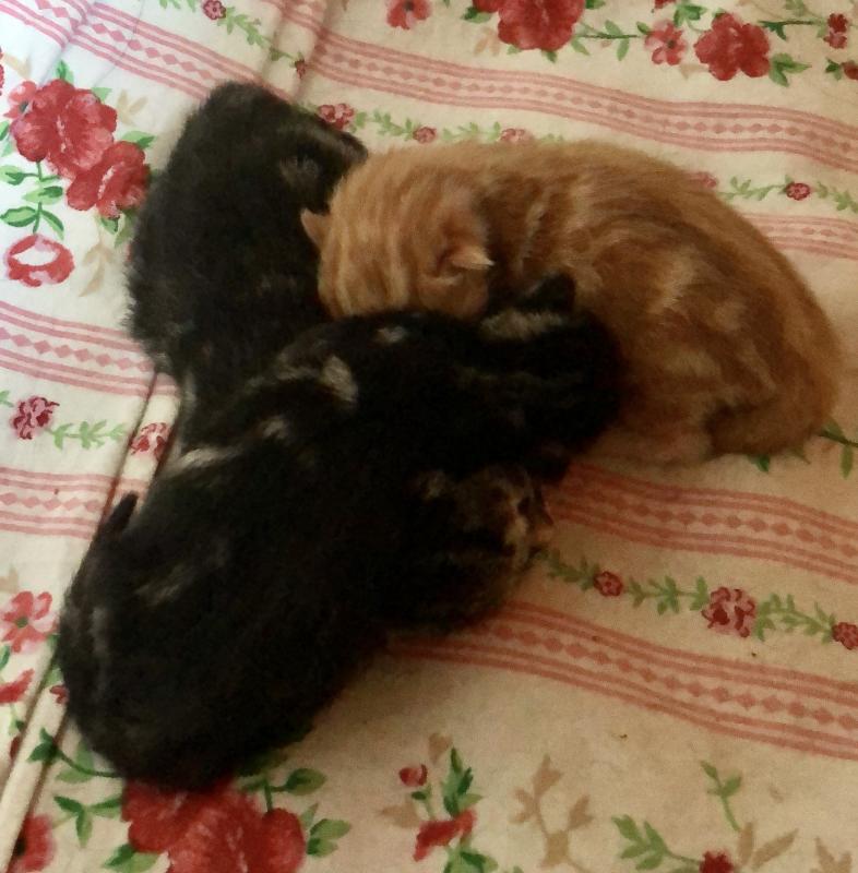 Guten Morgen, alle sind fit. Die Wichte schlafen, Mama war gerade drinnen zum Fressen und aufs Klo gehen. Es ist bei drei geblieben und ja, eins ist rot ;D die anderen sehr dunkelgrau mit hellen Streifen, aber so richtig sieht man das erst noch. Butzi hat nur Hunger, aber sie hat das toll gemacht.