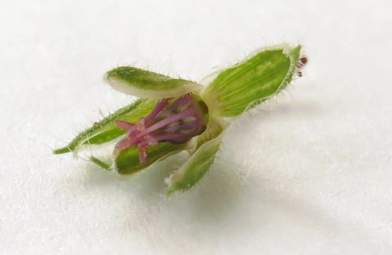 hier, die Blättchen unter den haarigen Blüten stechen.
