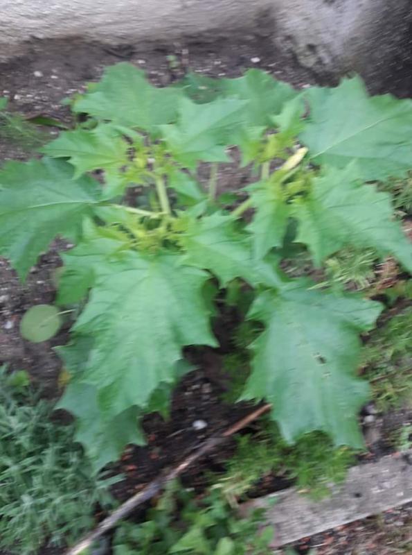 Und das hier sieht stechapfelig aus, aber die Blüten sind nicht weiß sondern cremefarben.
