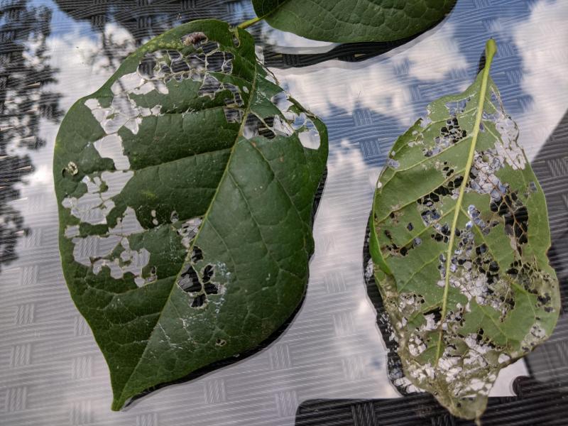 an meiner Magnolia Wieseneri habe ich heute ein paar Blaetter gefunden, die ziemlich zerfressen aussehen. Weiss jemand, welche Ursache hier vorliegen koennte?