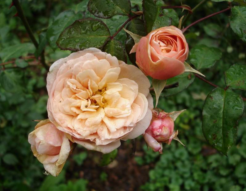 Eine Strauchrose ist nicht nur Rose. Ja, sie ist auch ein Strauch, der auch ohne Blüten, nur mit Tautropfen und Knospen geschmückt einfach herrlich aussieht. Nächste Woche wird es ein Feuerwerk geben! Lady Emma Hamilton