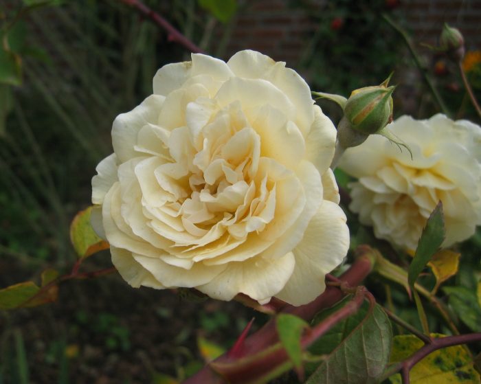 Auch im Herbst kann man Frühlingsgefühle haben! Z.B. auf die erste Blüte erst im Frühjahr gepflanzten Colonial White sich mit grossen Ungeduld freuen. Ob die Rose es noch schaffen wird?