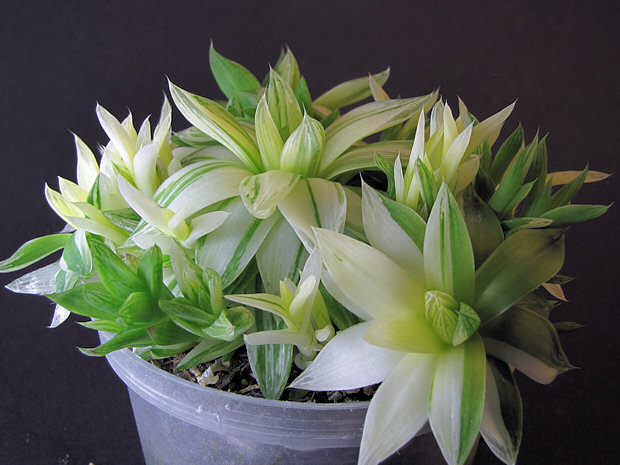 Heute ist bei mir Haworthia cymbiformis der Star des Tages. Manchmal etwas zerrupft, weil die rein grünen Triebe entfernt werden.