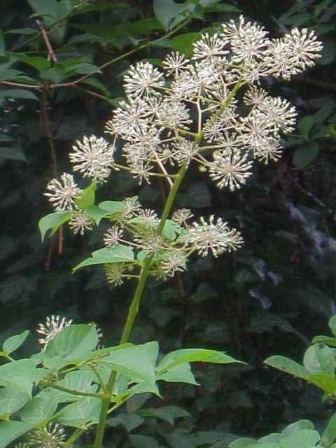 Sieht aus wie ein Gehölz und ist auch so groß (2 m), aber es ist eine Staude: Aralia cashemirica