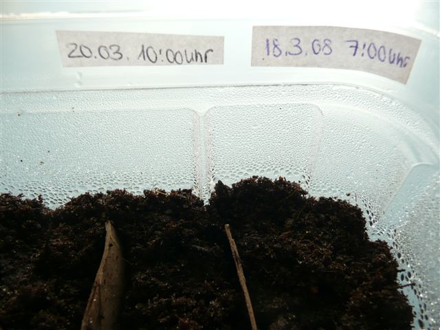 Das 1. Mal habe ich Pi mal Daumen nur nach Mondphasen gesät. ( Zunehmender Mond und 2 Tage vor Neumond) Das 2. Mal habe ich am 11.3. günstiger Tag und am 15.3. ungünstiger Tag gesät. Das Resultat ist beinahe dasselbe. Das 1. Mal ging die Saat nach 3 Tagen auf,alle, die 2. ab dem 6. Tag bis heute! Bei dem 2. Versuch ging die Saat nach 4 Tagen auf und zwar alle und die vom 15.3. ist noch nicht zu sehen.