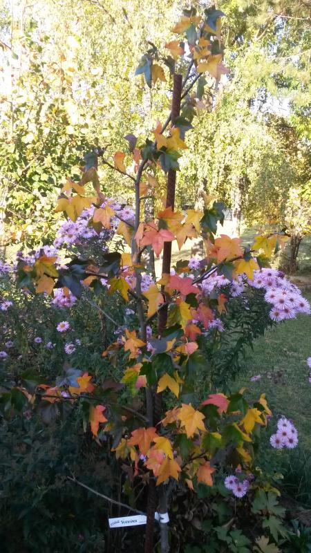 Unser Amberbaum im Herbstkleid.