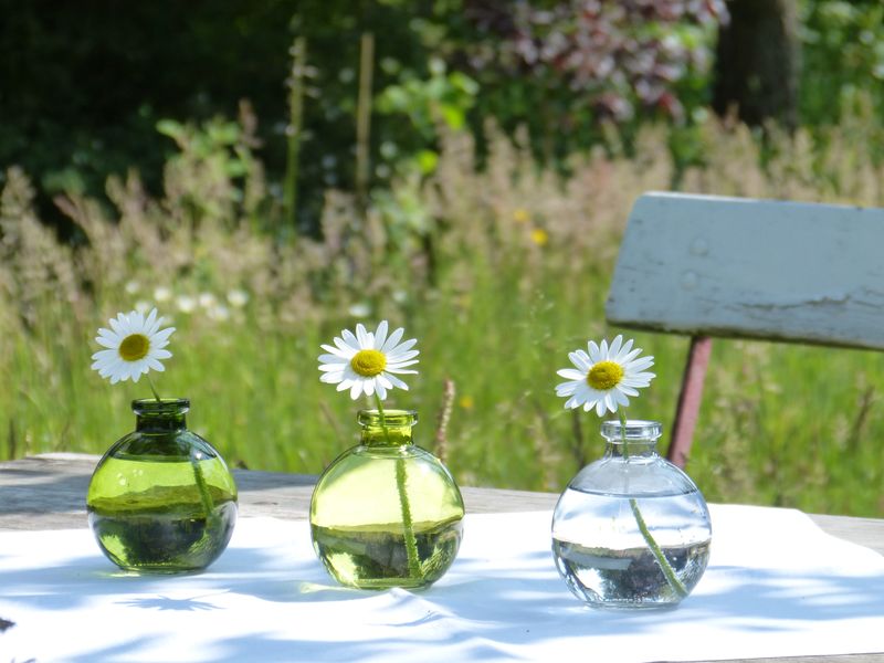 So geht es mir auch immer. Ich bin heute ganz schön unentschlossen durch den Garten gerannt, was ich denn wohl für die kleinen Vasen abschneiden könnte.Ansonsten bin ich mit den Blüten des Gartens zu geizigIch guck sie mir lieber im Garten an...Da hab ich länger was davon.