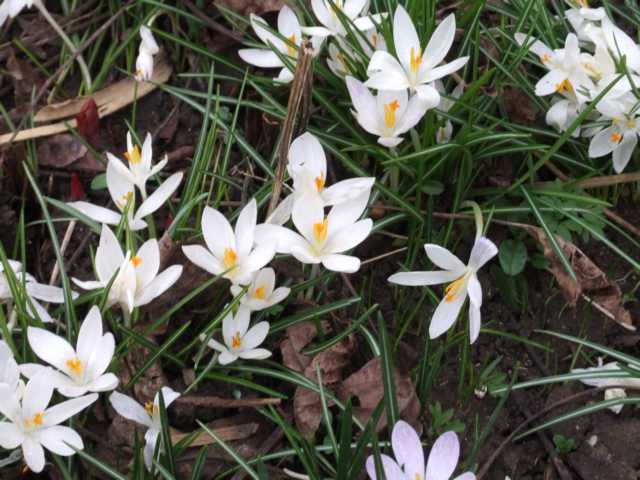 Aber auch der weiße Crocus tommasinianus taucht jetzt überall durch Selbstaussaat auf.