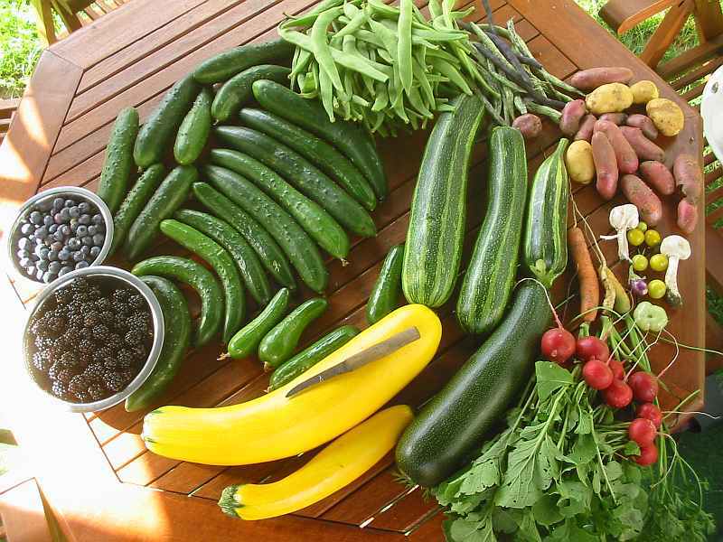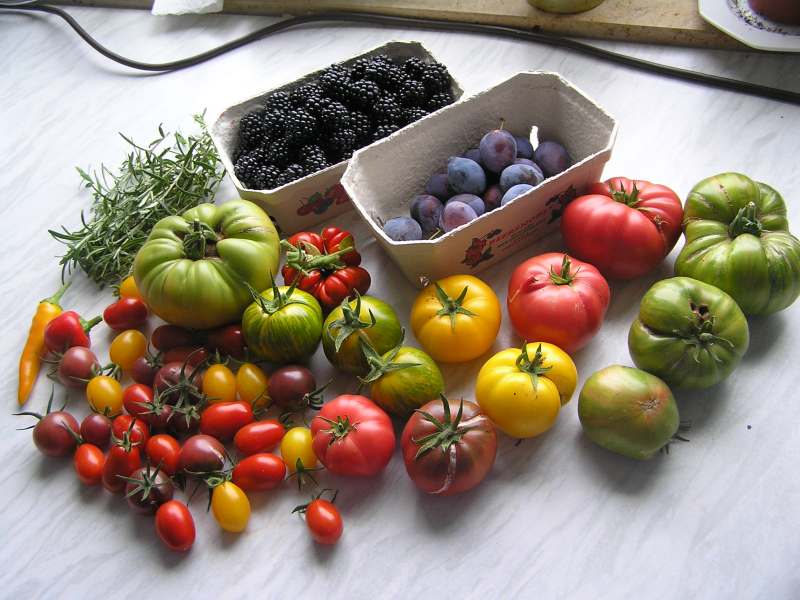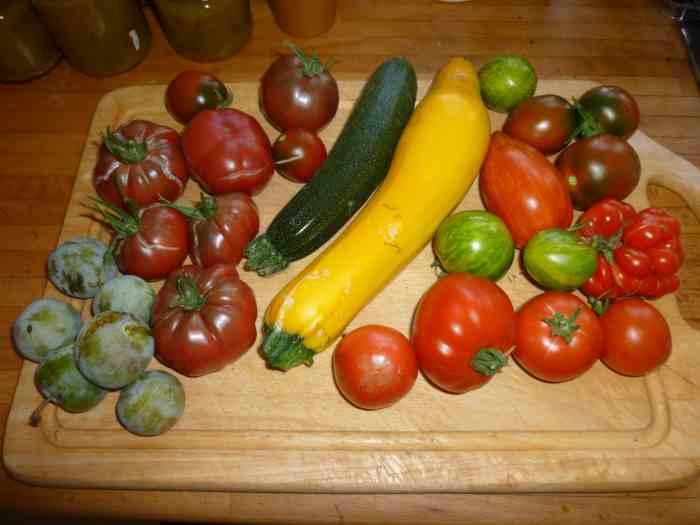 Schön, diese Erntebilder. Hier auch mal wieder was von mir:Aella: wie heißt denn die dicke grüne Tomate links neben den Brombeeren?