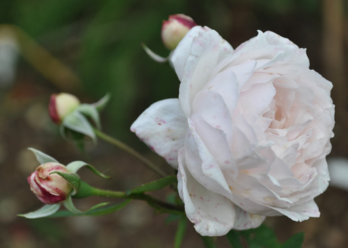 Die Baye's Purple Rose ist gerade dabei, mich sukzessive schwach zu machen. Aber wenn ich euch recht verstehe, blüht sie nur selten.Die kleinen Fleckchen sind wieder da.