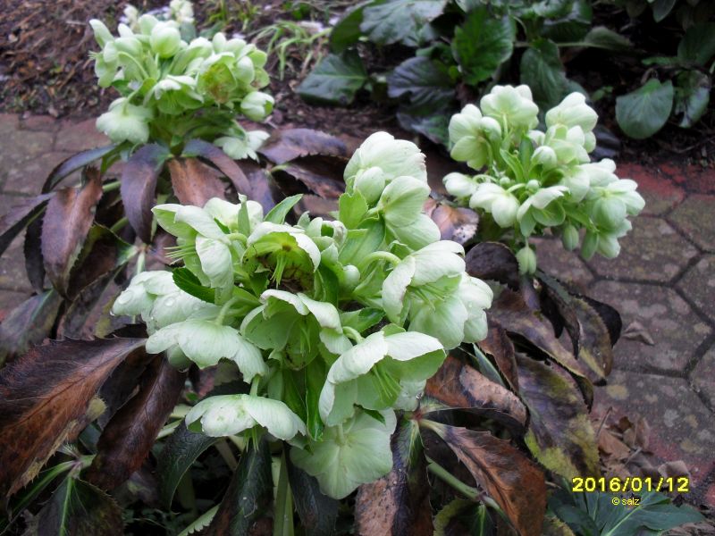 Ist vielleicht nur eine Überreaktion auf den speziellen Witterungsablauf dieses Jahr; hier haben die H. foetidus und Hybridformen auch die Blätter ungewöhnlich stark abgeklappt und eingerollt, als hätte es -25°C.