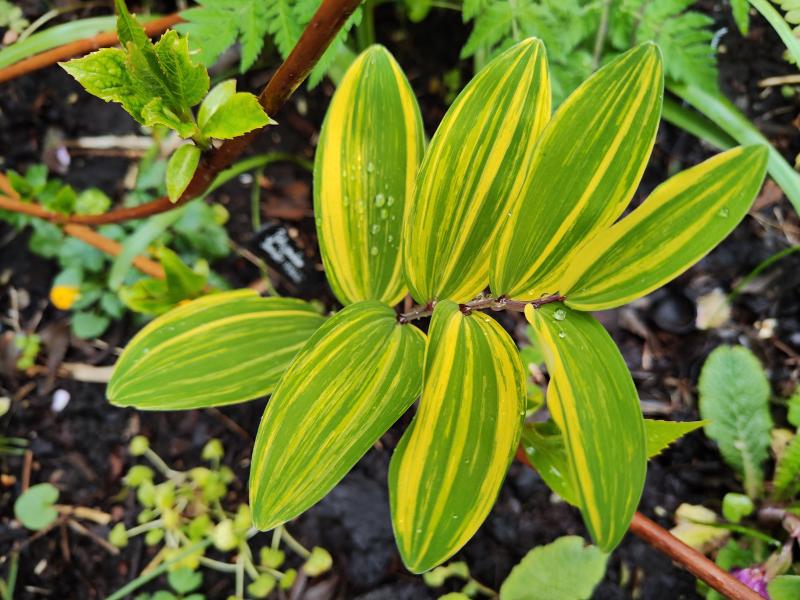 Sehr gut gefällt mir Polygonatum 'Bamboo Leaf White Variegata', beim Kauf vor zwei Wochen spitzte es erst aus dem Topf.