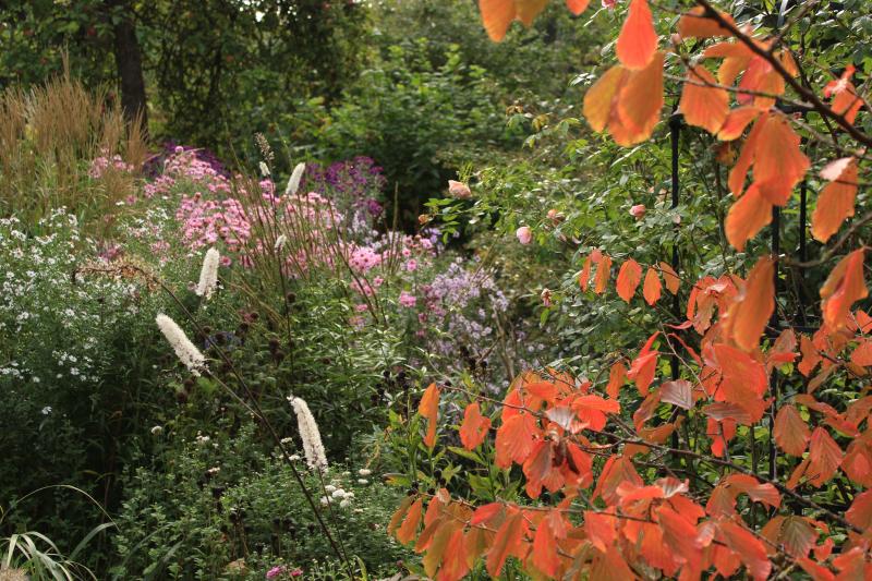 Astern kann man jedenfalls gar nicht genug haben, mittlerweile stehen welche in allen Ecken des Gartens, wo sie im September und Oktober nochmal für einen krönenden Abschluss des Gartenjahres sorgen. Auch so manch andere Staude hat sich noch einmal zu einer kleinen Nachblüte entschlossen, wie hier Geranium 'Orion', welches mit seinen riesigen blauen Schalenblüten schon im Frühsommer für Farbe sorgte. Bald wird sich das Laub glutrot färben, aber die Herbstfärbung der Stauden, Sträucher und Bäume fängt gerade erst zaghaft an.