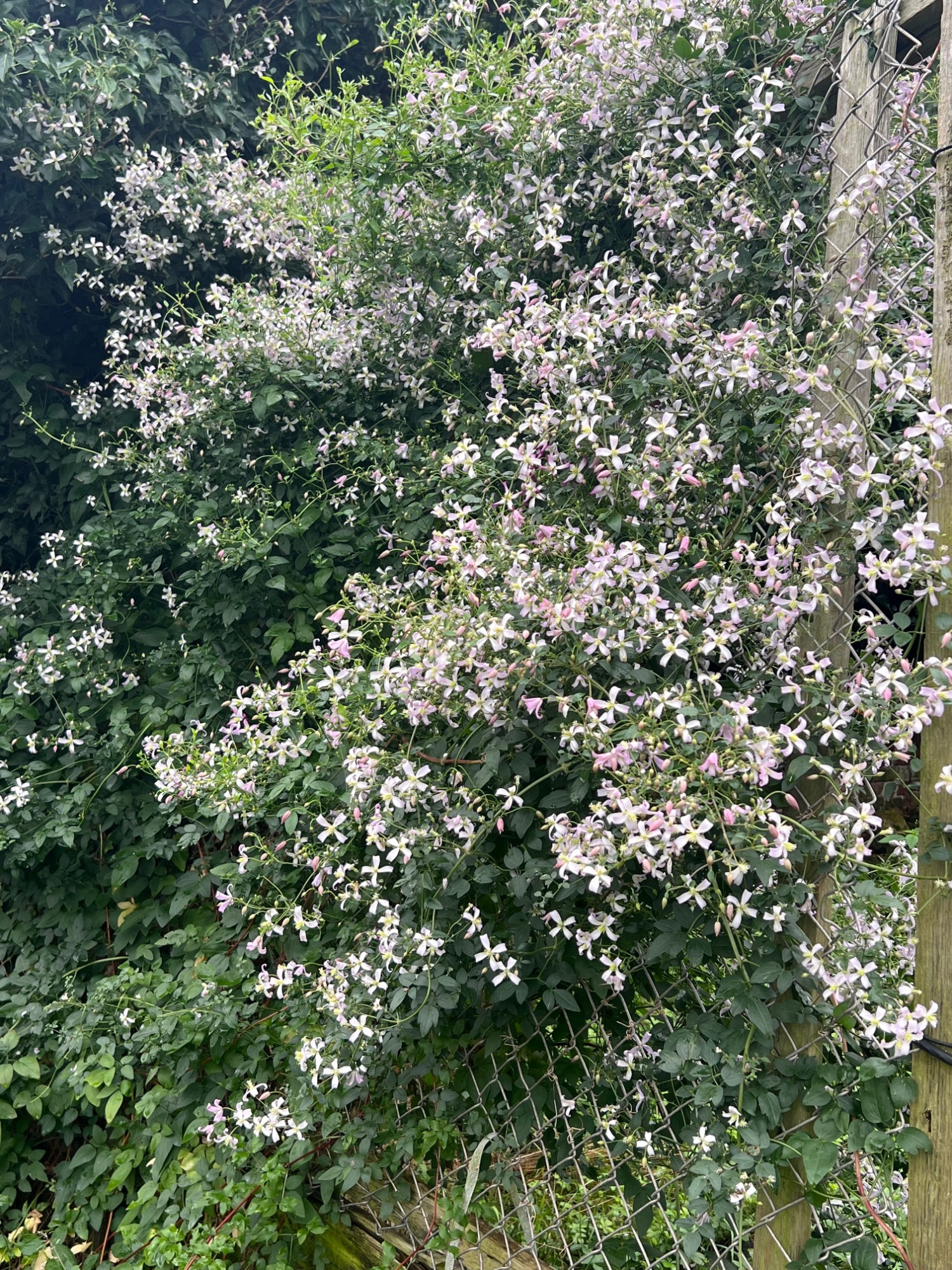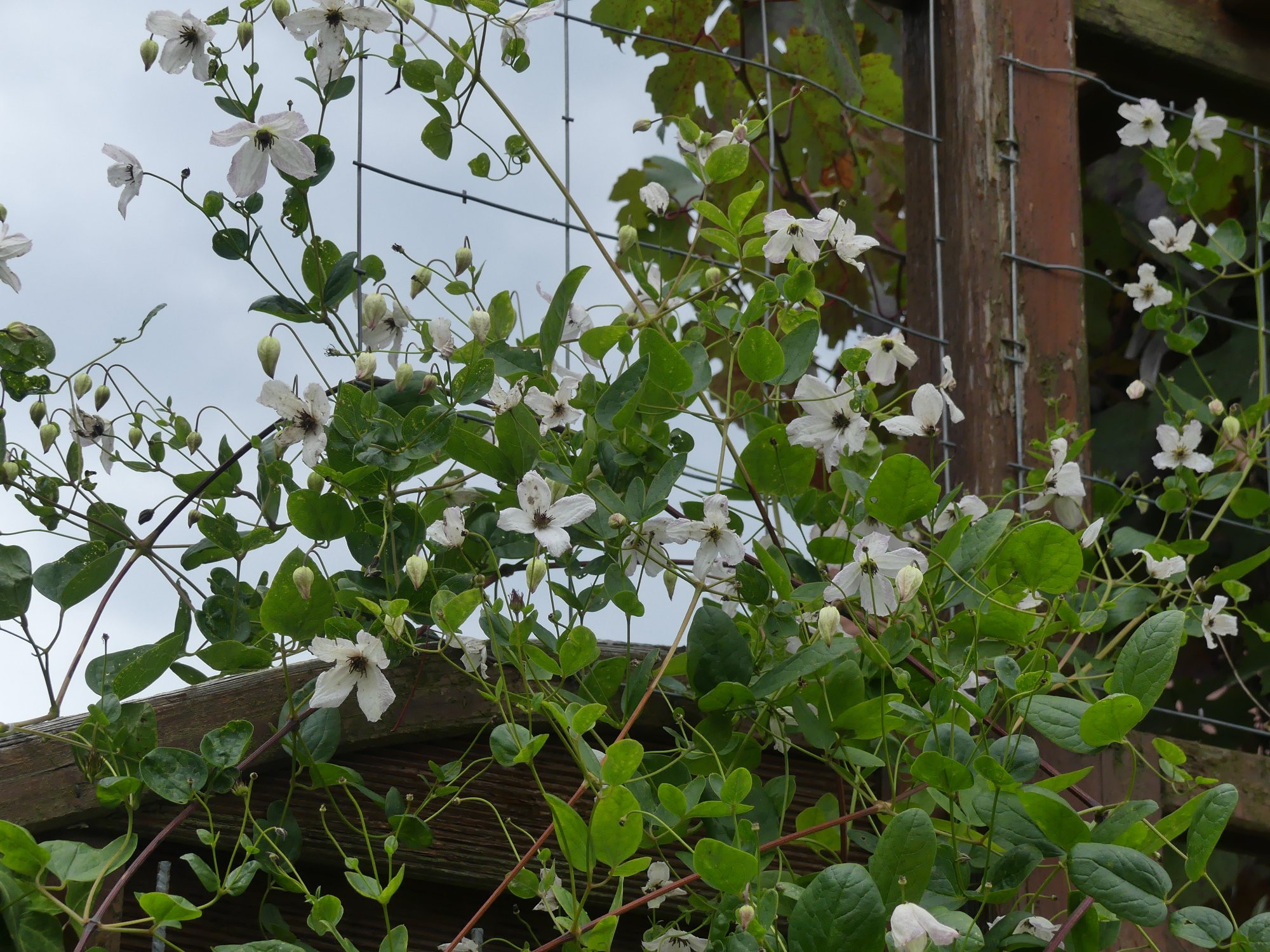 Aber meine gepflanzte Armandii an der Ostseite der Scheune legt jetzt richtig los, mein Mann hat noch keine Ahnung was sich daraus entwickeln kann