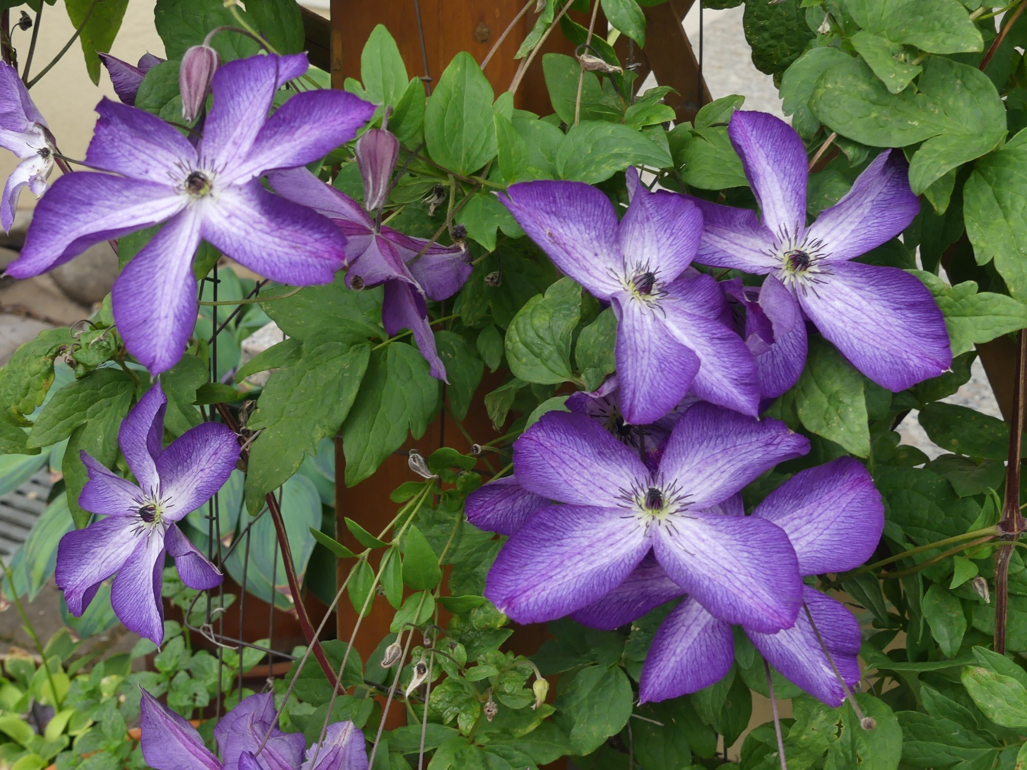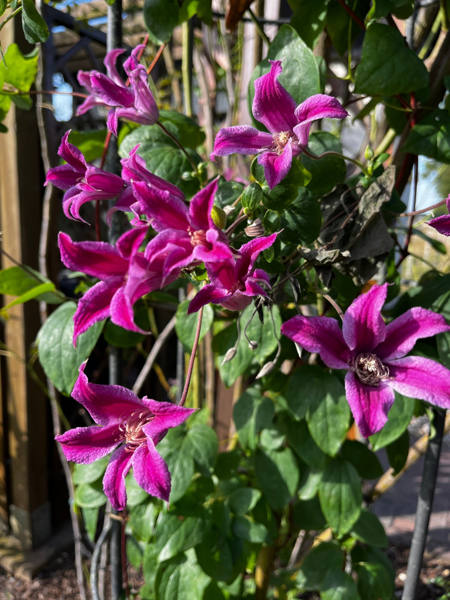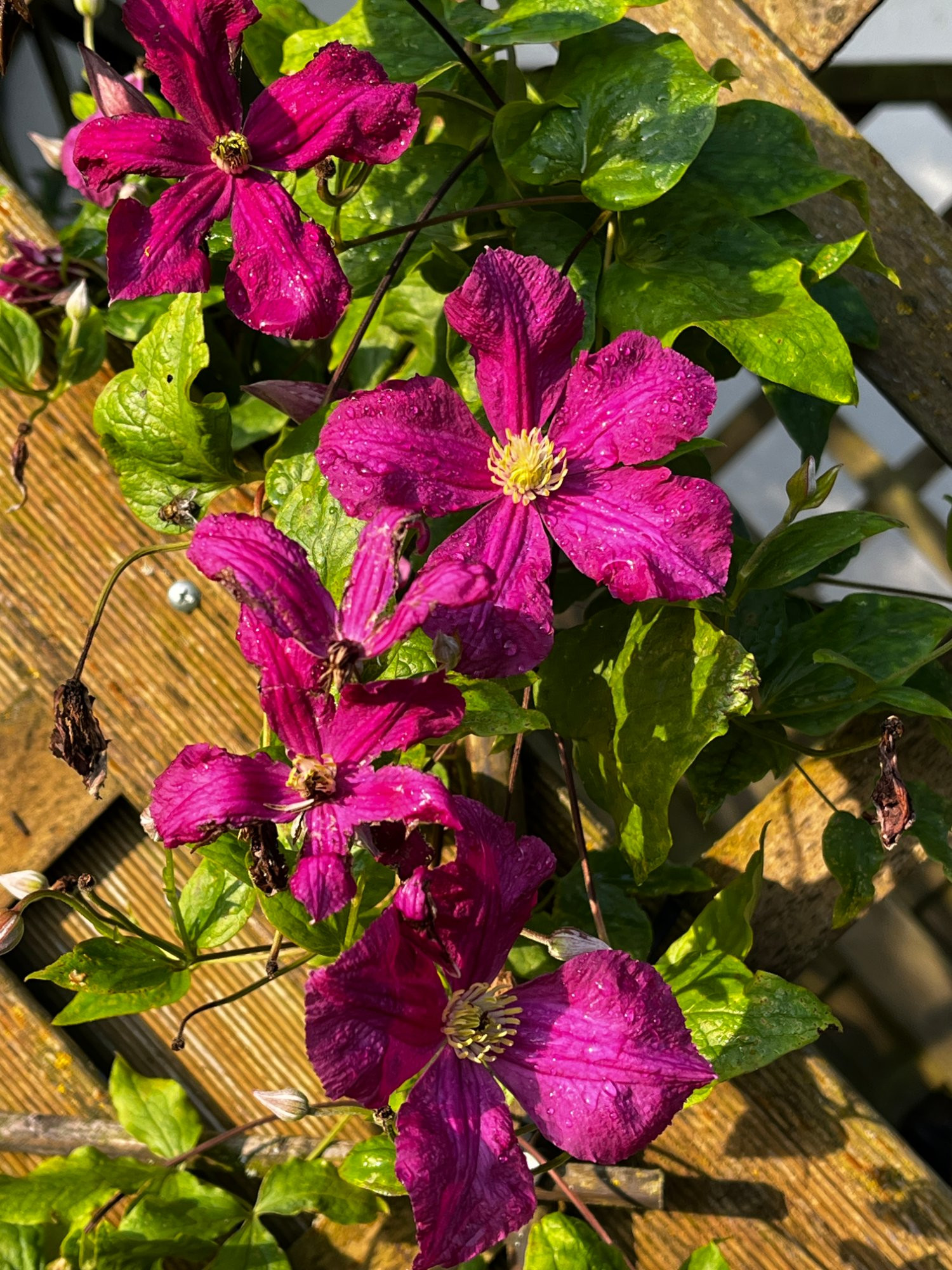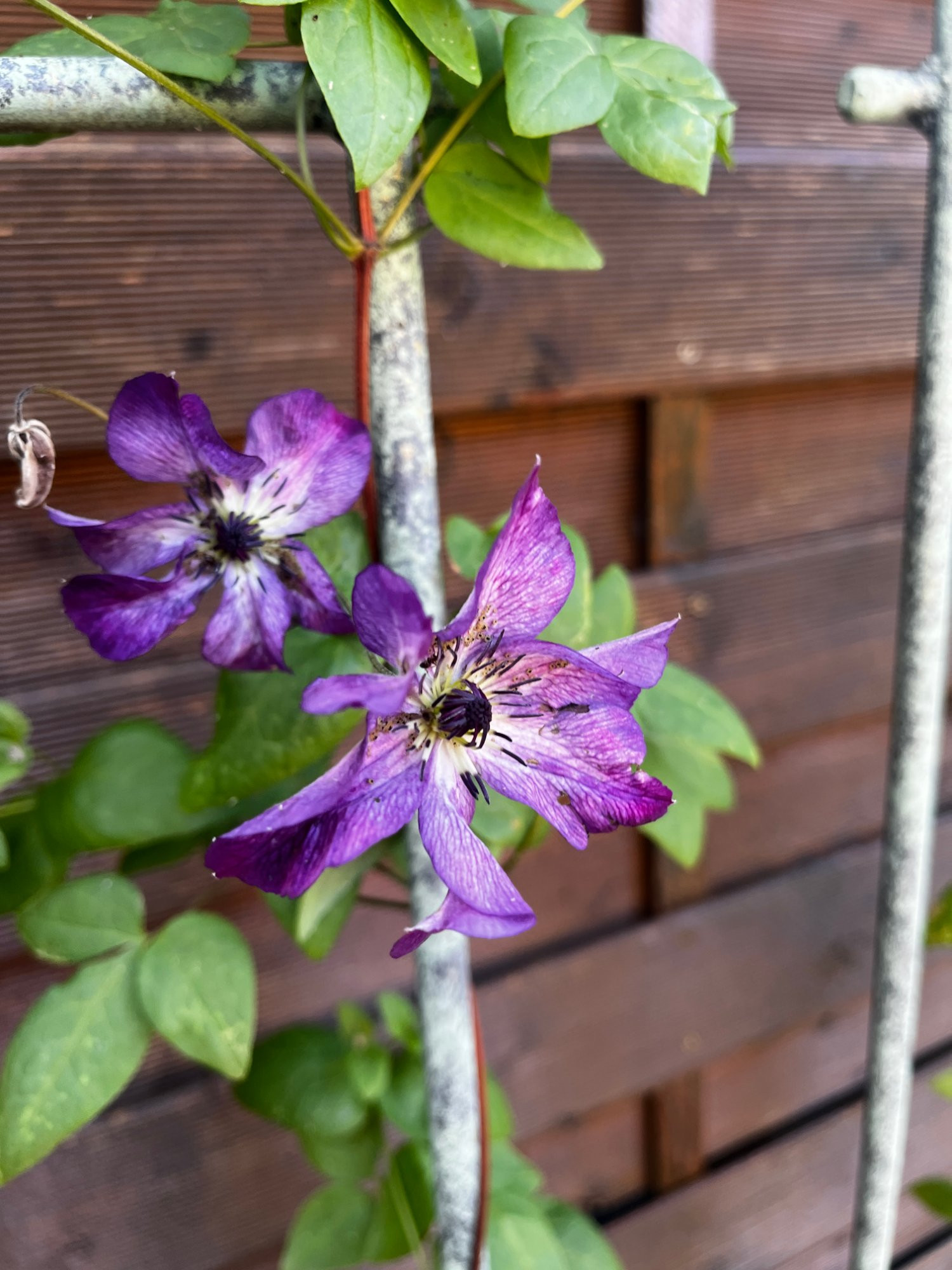 hier bin ich dieses Jahr nicht glücklich mit der Clematisblüte, aber aus der Nähe sehen einige ganz gut aus