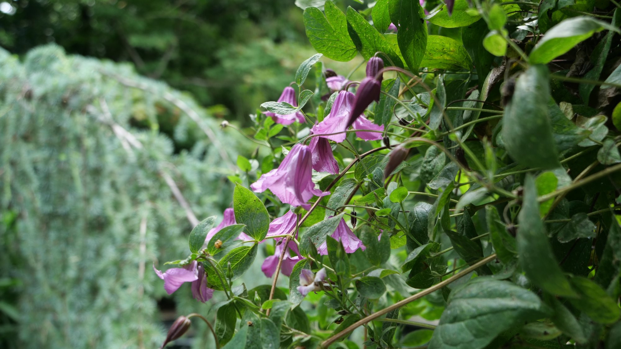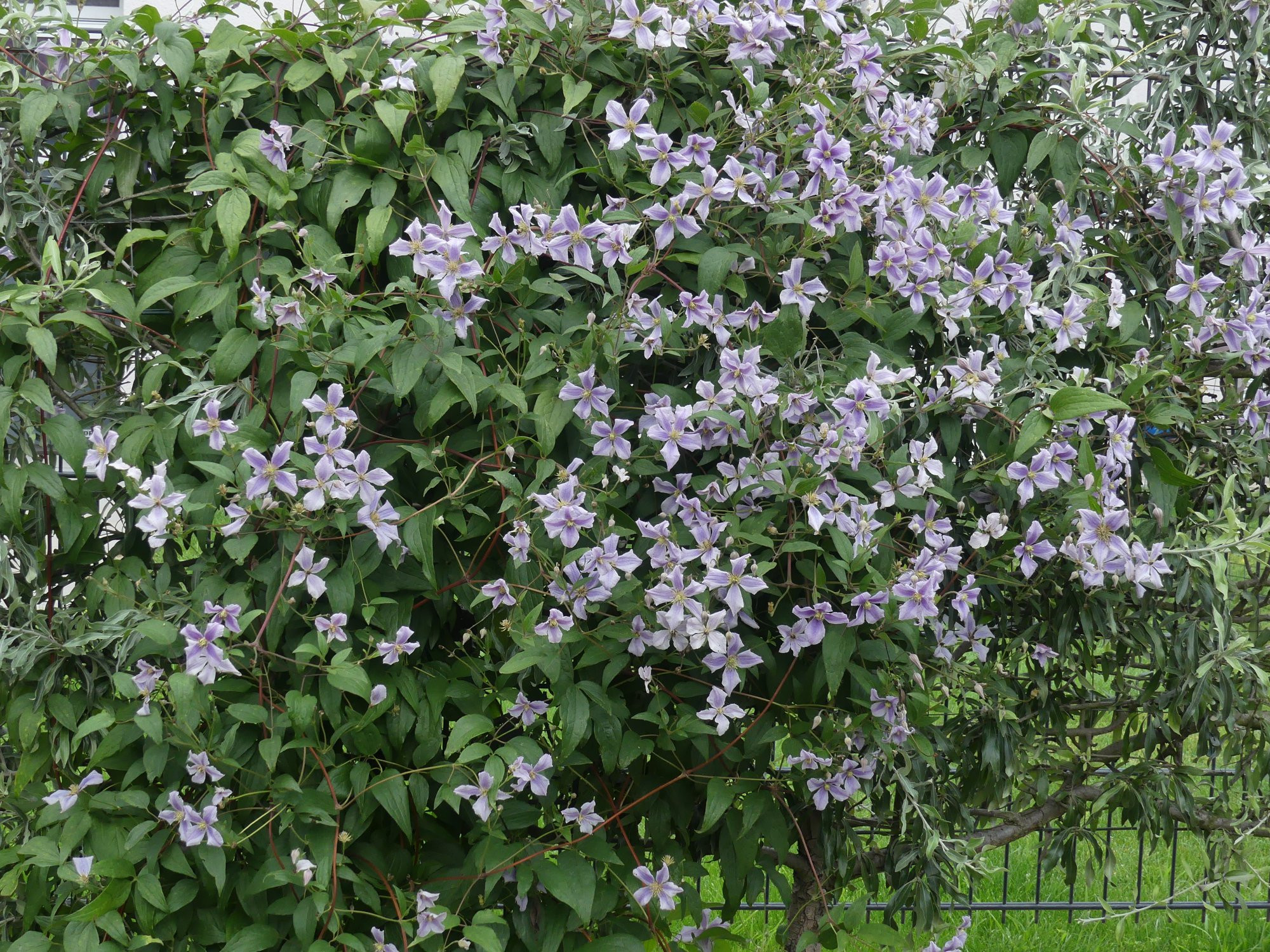 Eine Meter weiter wächst Clematis x jouiniana 'Praecox' sehr üppig.
