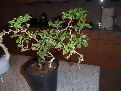 Ne, ich habe ihn aus nostalgischen Gründen im Herbst noch in letzter Minute reingeholt.Von dem Teil habe ich übrigens noch nie ne Schote probiert, weil ich jahrelang nicht wußte, ob es ein normaler Chili ist, oder so ein Solanum wie das Korallenbäumchen.