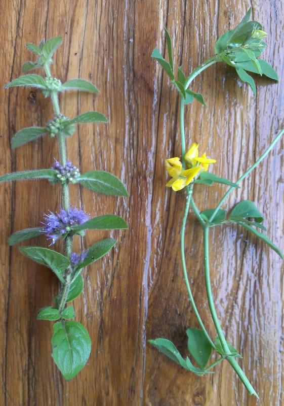 Rechts könnte Hornklee (Lotus corniculatus) sein
