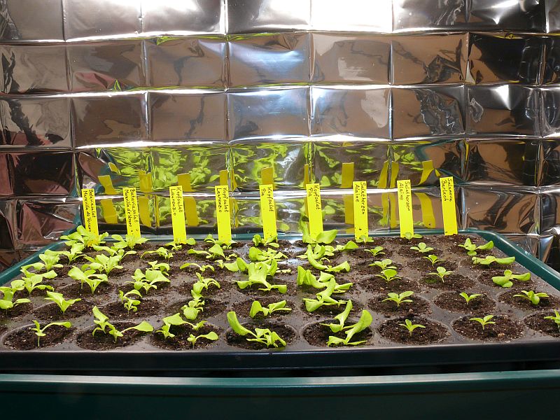 Die Ende Juni ausgesäte Salatplatte. Im Kellergewächshaus sind es jetzt 19°C.