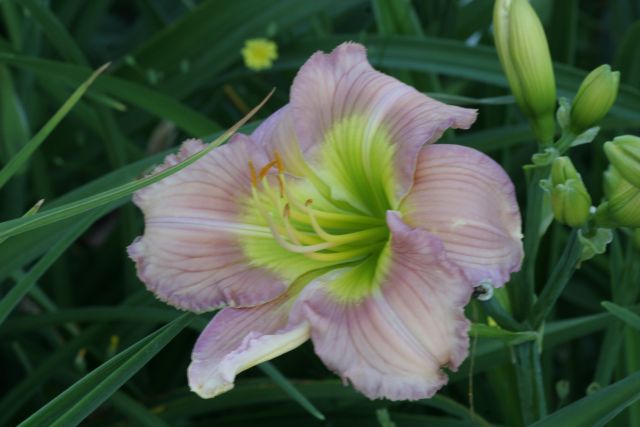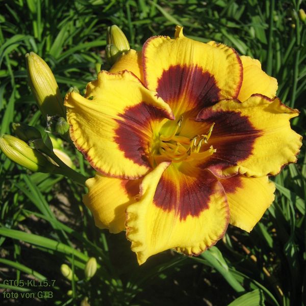 @ potzDer goldgelbe Spidertyp ist klasse in der Form. Die Wellung der Petalen und die gleichmäßige Zurückrollung aller drei Sepalen. Prima. Wie sind denn Knospenzahl, Verzweigung und Höhe? Oder blüht er dieses Jahr das erste Mal? Dann kann man das ja noch nicht so genau sagen.@ daylillyder letztjährige Sämling beeindruckt immer noch