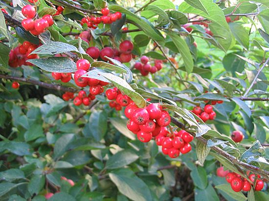 Ein Allerwelts-Strauch und oft geschmäht ist Cotoneaster. Aber wenn er seine Siegellack-roten Früchte trägt, ist er eine bezaubernde Schönheit.