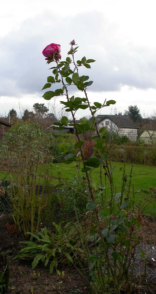 Ich bin gespannt, ob die andere Knospe auch noch aufgeht. Die Rose ist übrigens fast 3 m hoch...