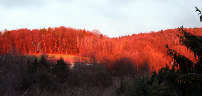 das Abendrot im Wald ist ja umwefend
