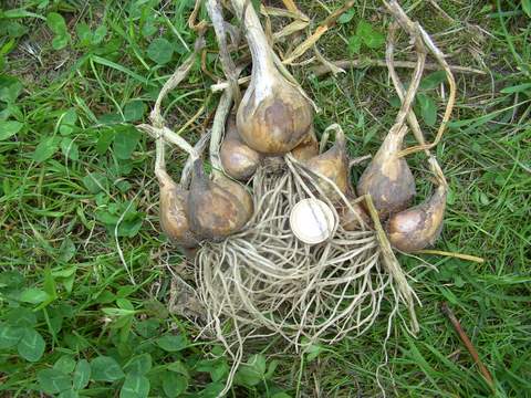 meine "griselles" sind jetzt alle geerntet. diese jahr war der ertrag viel besser als 2010, vor allem aber die durchschnittsgröße der zwiebeln. ich habe sie ein wenig mehr gedüngt und mehr gewässert als im letzten jahr und vor allem: die kleinsten zwiebelchen entfernt.hier sieht man eines der größeren zwiebelnester.der geschmack ist wirklich überragend gut. im vergleich zu den ebenso frisch geernteten wintersteckzwiebeln sind die schalotten deutlich weniger scharf aber viel würziger.