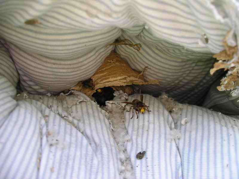 Ein ungewöhnliches Nest hat sich eine Königin zwischen alten Unterbetten ausgesucht