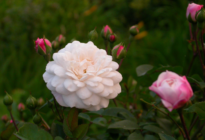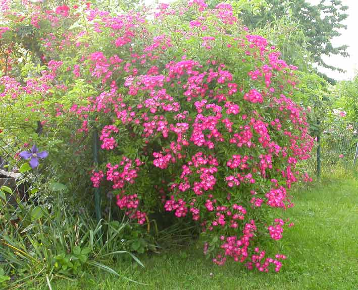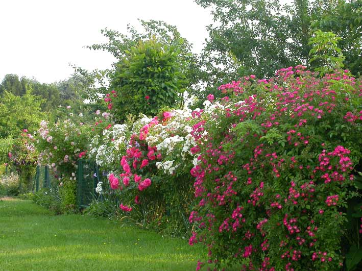 Damit ist die Kante komplett: Maria Lisa, Jacques Cartier (noch zu klein und verdeckt), Trier, Rosarium Uetersen, Waterloo, Elmshorn und Phyllis Bide. Ganz hinten und nicht mehr zu erkennen stehen noch Cardinal Hume, Stanwell Perpetual als Hochstamm und Mozart.