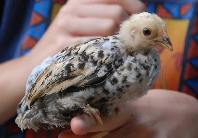 Nochmal ich. Es gibt wieder junge Enten. Vier an der Zahl. Diese hier ist in meiner Hand eingeschlafen. Alle sind einen Tag alt.