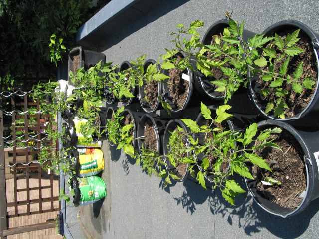 Bei diesem Wetter hier mache ich mir langsam Sorgen um meine Freilandtomaten. Irgendwie wollen die nicht mehr weiterwachsen.Ob das daran liegt, daß es letzte Woche mal so kalt war?Nur Gruntowy stört sich nicht am Wetter und wächst weiter.Große Hoffnung setzte ich auf in die Tomaten im Kupfertopf, die dürften theoretisch nicht krank werden. Die schönste Tomate ist noch immer die unbekannte, die sich selber im Chillitopf ausgesät hatte und jetzt zusammen mit der Chilli draußen im Kupfertopf steht, sie ist als Jungpflanze nicht pikiert worden und keimte damals in frisch gedüngter Erde.