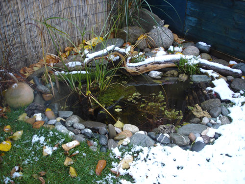 Bei uns hat es auch ein bisschen geschneit, das ist um die Zeit durchaus normal. Erstmals sind Schneeflocken in mein Teichlein gefallen. Geht alles wieder weg, aber auf den Bergen bleibt es wohl liegen.