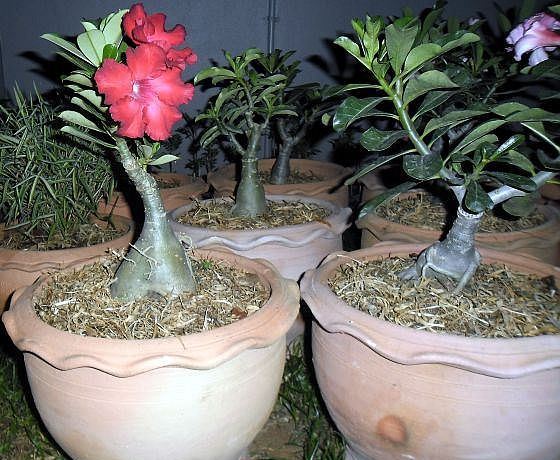 Die gepropften sahen immer sch**ße aus meinem Empfinden nach, vielleicht hat sich die Veredelungsmethode ja inzwischen verändert, aber sonst hatte man immer einen bleistiftdicken Oleandertrieb, auf dem krebsgeschwürartig verdickt ab der Veredelungsstelle die Adenium saß
