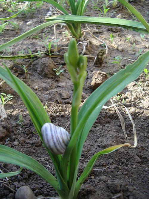 Ich nehme an, das ist auch so ein Prescape. Groß ist der Sämling ja noch nicht, wie das Schneckenhaus zeigt. Was mach ich nun mit diesem Hascherl? Auch wieder ausbrechen wie im Herbst?Lassen so frühe Blütenansätze eigentlich auch eine blühfreudige zukünftige Pflanze erwarten, oder ist es nur eine kurzfristige jugendliche „Hyperaktivität“? Gibt es bei den Züchtern in dieser Richtung Beobachtungen?Darüber hinaus gibt es auch schon verfrühte Stängel (prescapes) an einigen wenigen Sämlingen und Sorten, z. B. an meiner Kupferteller.![]()